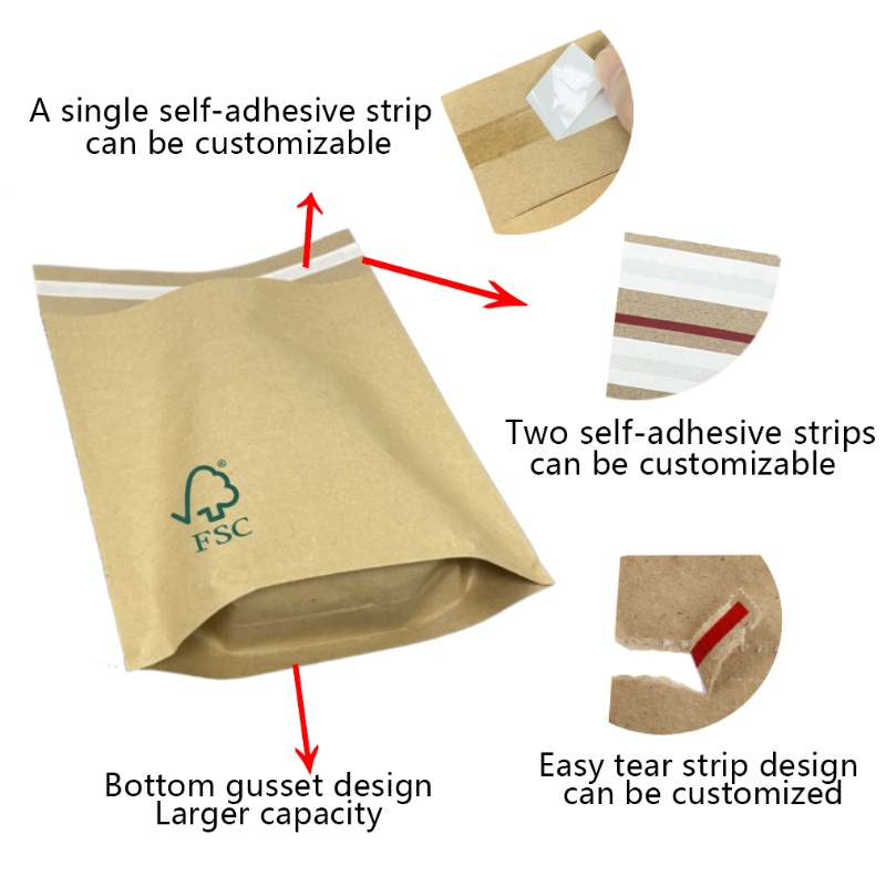 Ciri: Biodegradable Kraft Paper Mailer Prestasi kalis air yang baik, tidak lagi takut pada hari -hari hujan; Penggunaan pelekat super, memusnahkan pengedap getah, melindungi privasi, privasi adalah baik.