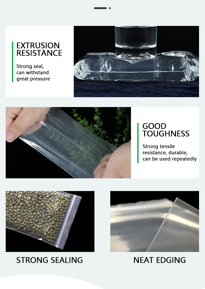 Beg pengedar diri yang dikitar semulamenawarkan banyak kelebihan, menggabungkan kemampanan alam sekitar dengan kepraktisan dan keberkesanan kos. Diperbuat daripada bahan kitar semula, mereka membantu mengurangkan sisa plastik dan sejajar dengan matlamat pembangunan yang mampan. Reka bentuk penyembuhan diri memastikan pembukaan dan penutupan mudah sambil menyediakan prestasi pengedap yang sangat baik untuk melindungi kandungan dari kelembapan dan habuk. Beg ini juga mempunyai rintangan air mata dan kebolehgunaan yang tinggi, memanjangkan jangka hayat mereka. Di samping itu, penggunaan bahan kitar semula mereka menurunkan kos pengeluaran, menjadikannya pilihan yang sangat ekonomik. Sama ada untuk pembungkusan makanan, penyimpanan isi rumah, atau pengangkutan industri,beg pengedar diri yang dikitar semulaBuktikan menjadi sangat serba boleh dan cekap.