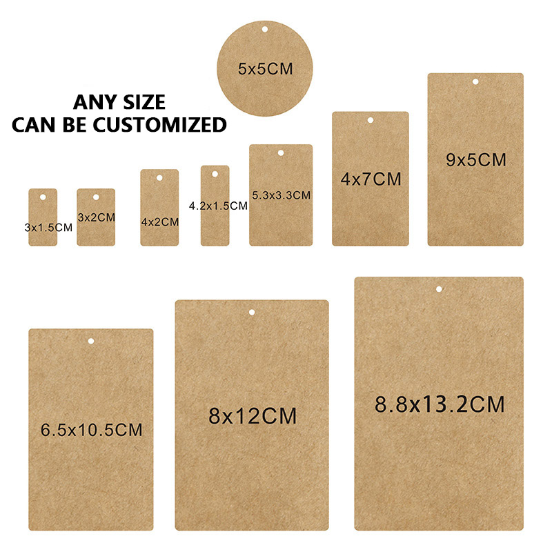 Zeal xmenawarkan pelbagai pilihan penyesuaian untuknyatag hang kertas kraft tersuai, termasuk saiz, bentuk, warna, dan percetakan. Sama ada anda lebih suka dataran minimalisTag Kertas Kraftatau tag yang diperibadikan dengan logo dan reka bentuk yang unik, pasukan kami memastikan percetakan berkualiti tinggi dan pemotongan ketepatan. Tag ini sesuai untuk pakaian, kasut, produk runcit, dan aksesori, menambah sentuhan unik yang meningkatkan identiti jenama dan pengalaman pelanggan.