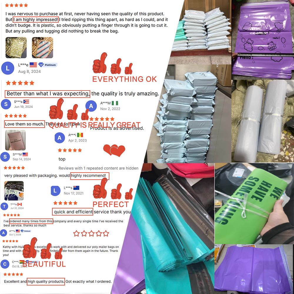 Diperbuat daripada bahan PE yang boleh dikitar semula berkualiti tinggi, beg pengirim poli kami adalah kalis air, tahan lusuh, dan memberikan perlindungan yang lebih baik untuk pakaian, aksesori, dan barangan kedai dalam talian semasa penghantaran.